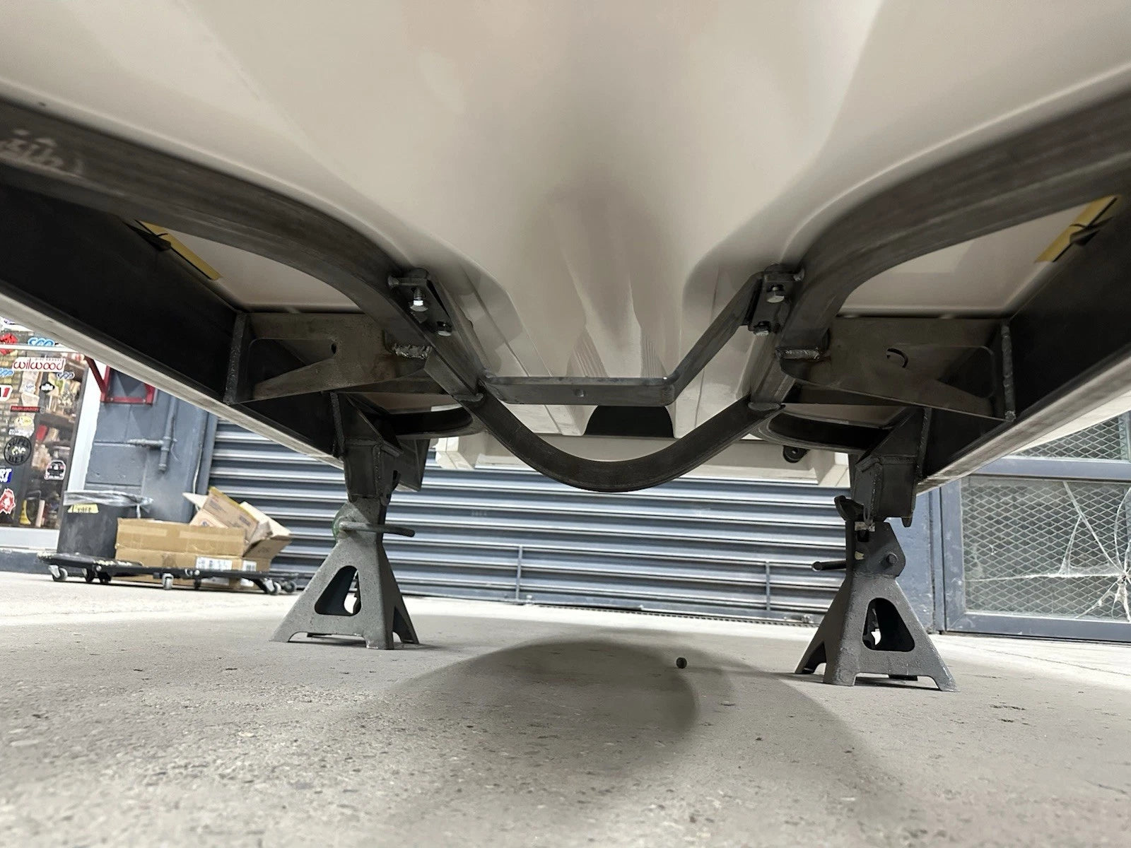 . fabricated 1 inch dropped front leaf spring crossmember installed and rear Complete fabricated and cad designed and cnc cut 4 link coil over rear suspension brackets installed and welded in the chassis, bars with poly bushed ends and differential brackets and coil over mounts included
