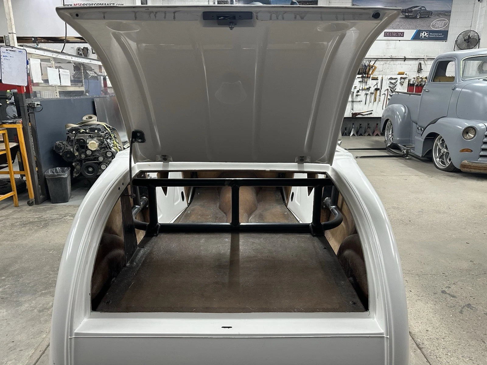 . exposed rear deck lid hinges, and original style latch and lever for a more original feel than completely smooth look